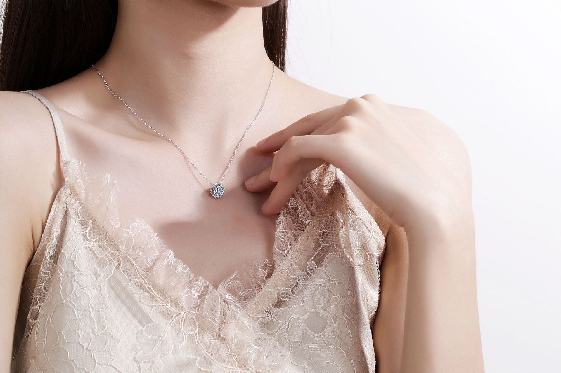 قلادة نسائية من حجر الموزانيت على شكل حقيبة دائرية على شكل نجمة وقمر وسلسلة ترقوة