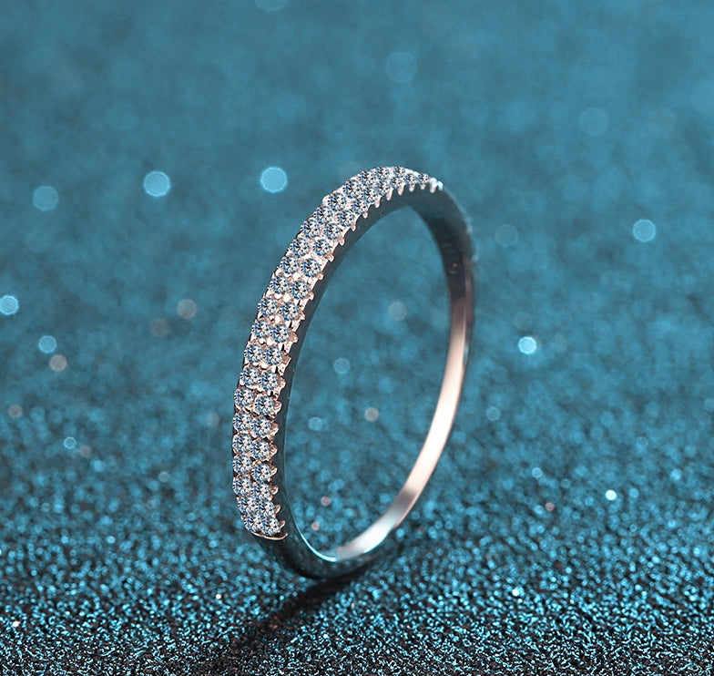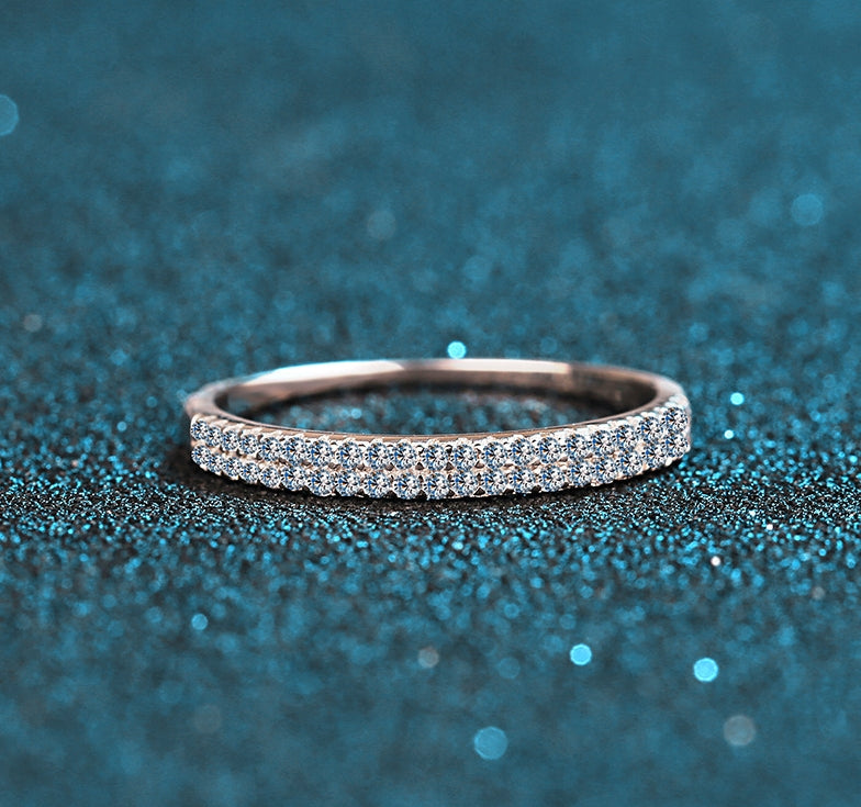 خاتم مطلي بالذهب PT950 مع 23 نقطة من حجر الموزانيت المزدوج الصفوف