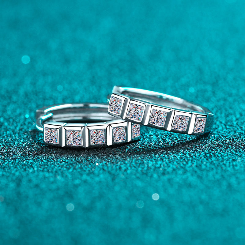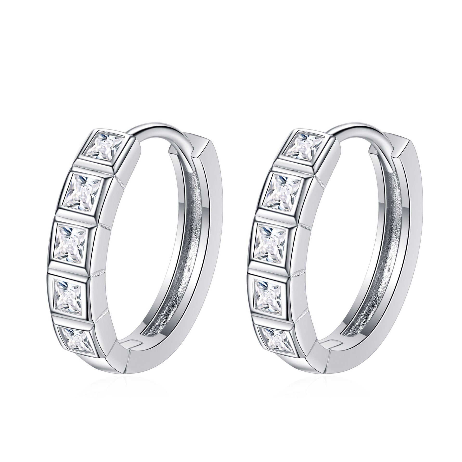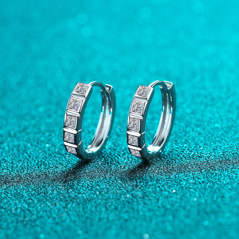 أقراط نسائية من الماس على شكل نصف دائرة مربعة من الموزانيت