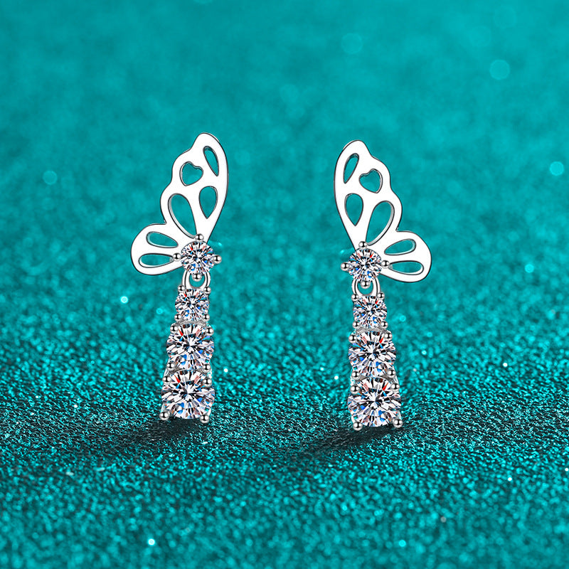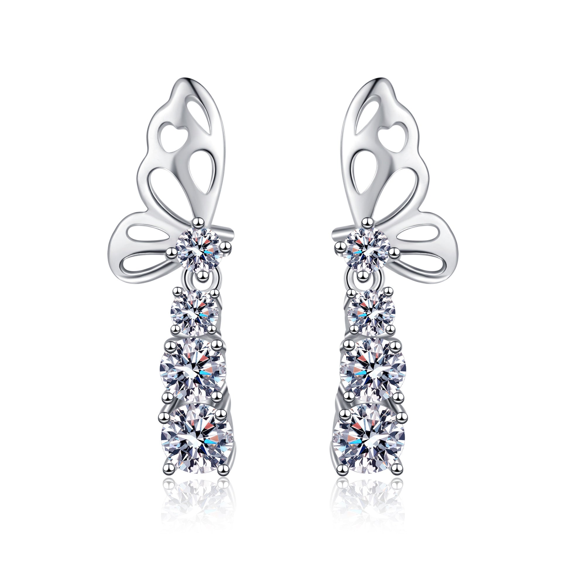 أقراط مويسانيتي نسائية على شكل فراشة أنيقة ومتطورة ذات إحساس رائع